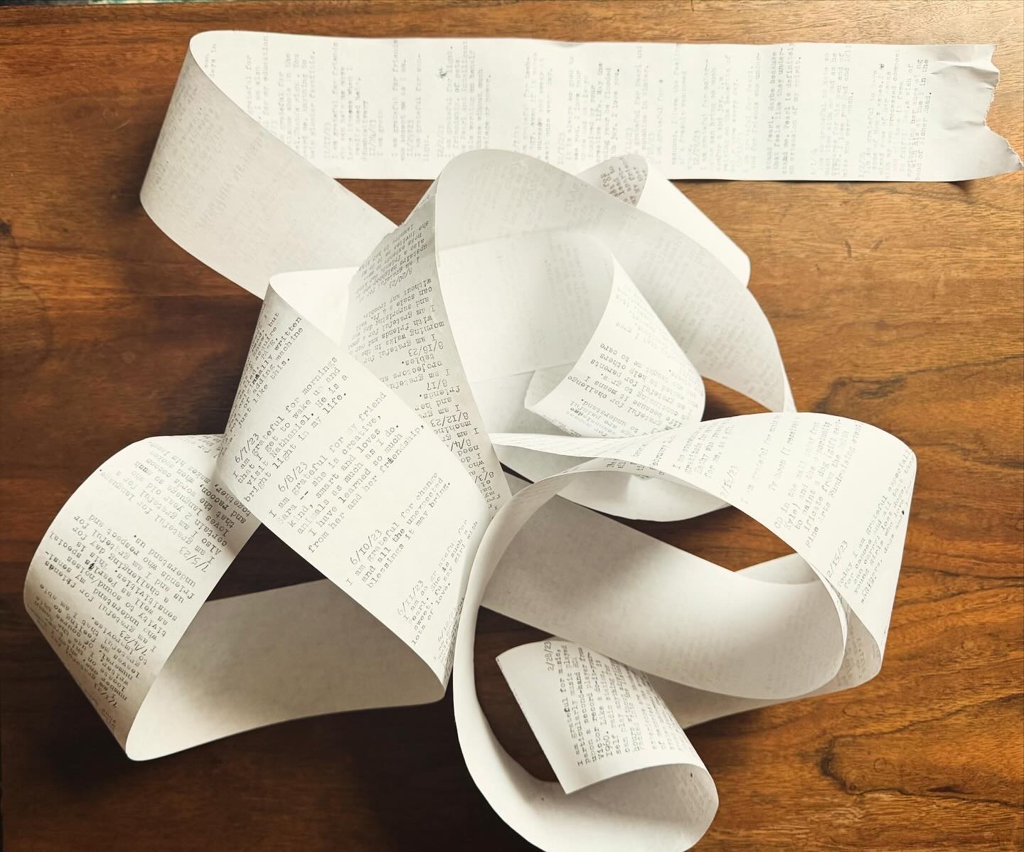 Then I found a vintage typewriter at a local charity shop, along with a roll of adding machine tape and it struck me that I could keep track of my honest gratitudes each day and watch them literally ‘add up’ throughout the year. Some days I still had trouble seeing any joy. Sometimes the search for what I could be grateful for ended up making me laugh.